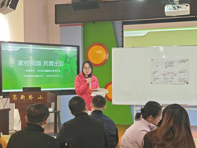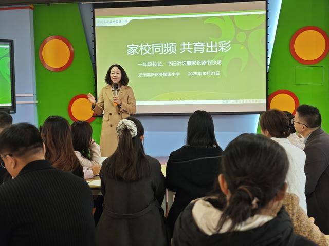近日,郑州高新区外国语小学(简称高新外小)校长、书记讲坛面向一年级家长全面开放,刘娜校长主持、张玉森书记及一年级班主任老师全程参与,通过深度分享与互动对话,精准搭建家校协同育人的沟通桥梁,为孩子们的健康成长探寻科学高效的共育路径。