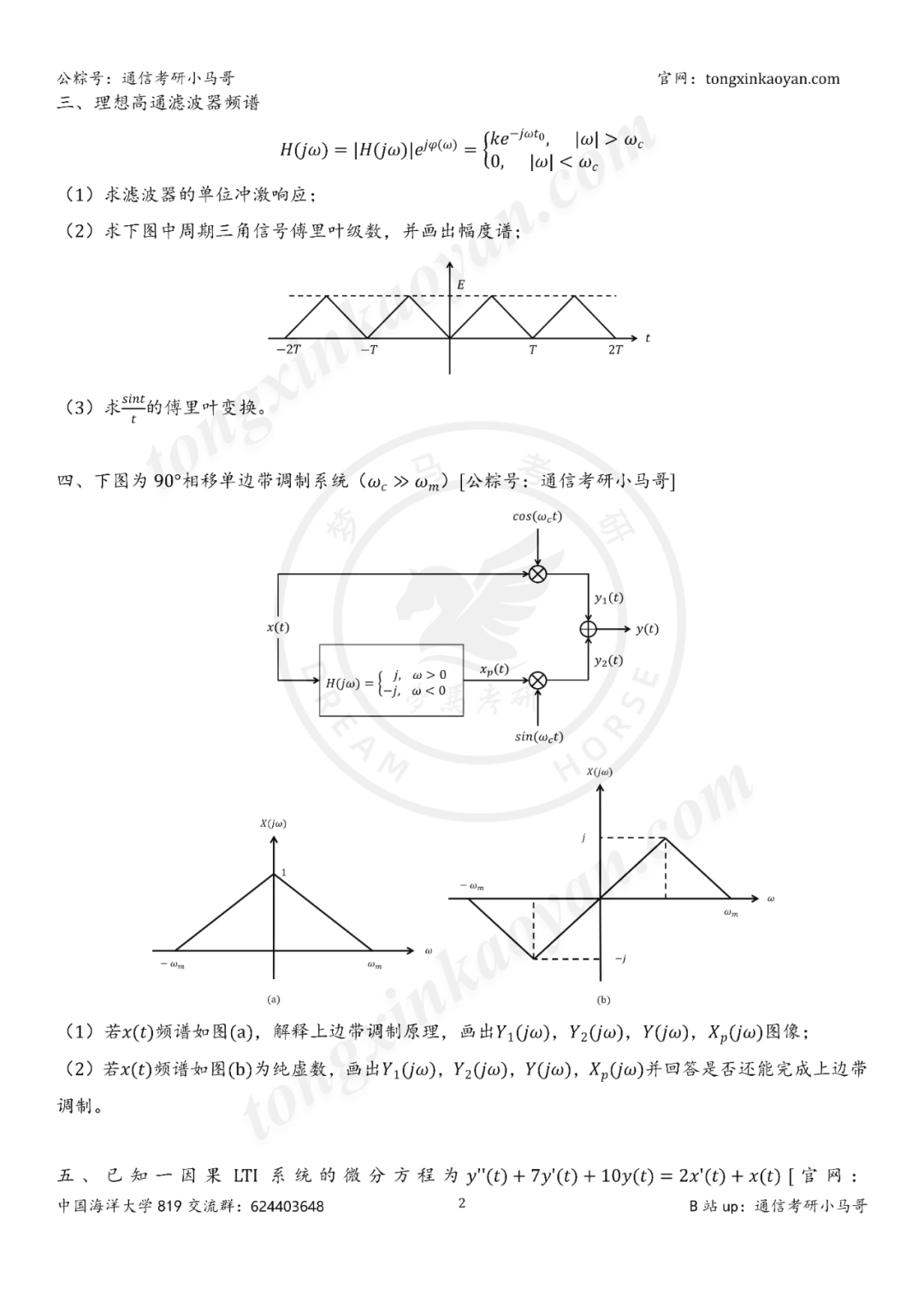 今天分享的是中国海洋大学819的信号与系统试题及解析。