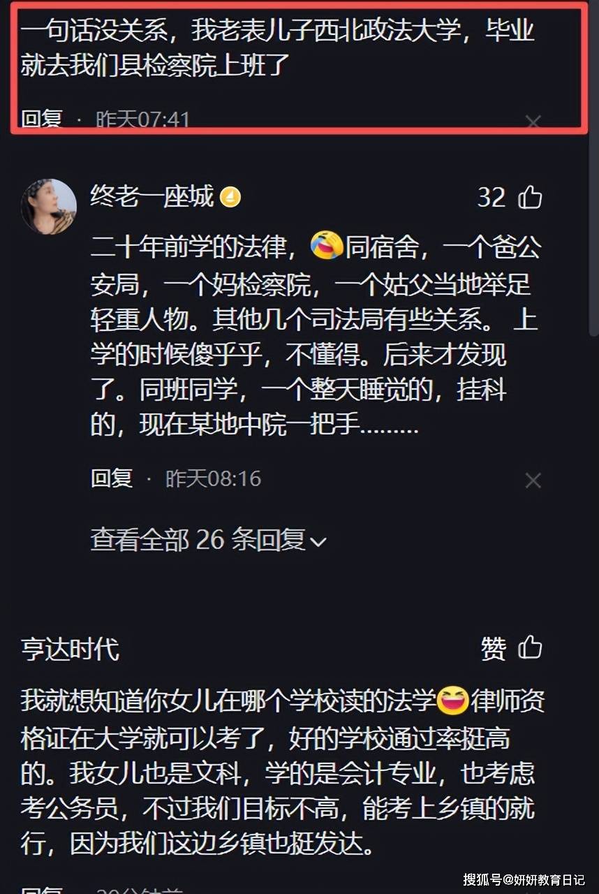有个网友说,他朋友的儿子西北政法大学毕业之后,就直接去县检察院上班了。这过程也没有多折腾。大家因此就提出了这样一个反问,明知道家里没有关系。