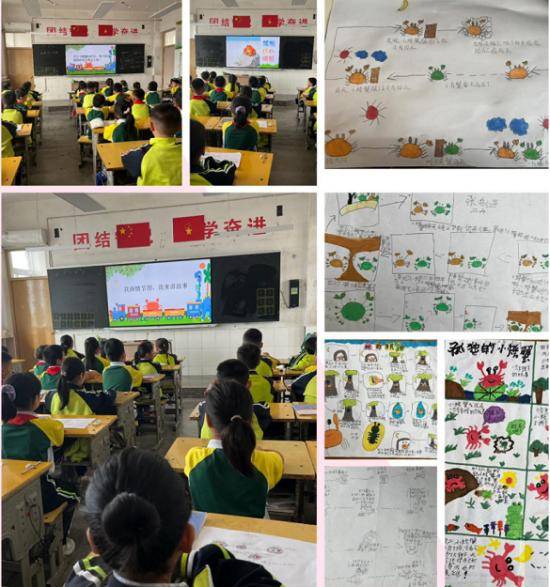 多元的互动场景,点燃孩子的阅读期待。在班级读书会上,孩子们拿着画满小标记的书本,叽叽喳喳分享“我最喜欢的情节”“我最喜欢的角色”,交流中加深了对书籍内涵的理解。在“阅读成果展”里,孩子们用笔绘制的故事情节图,歪歪扭扭写下的感悟,浸润着对书籍的喜爱。家长积极参与其中,和孩子一起扮演书中角色,让书香从校园延伸到家庭。同时,教师指导学生制作“阅读手账”,用贴纸、简笔画搭配短句,记录阅读收获,让阅读变得可视、可感。家校合作、师生家长共同发力,形成有效阅读闭环。