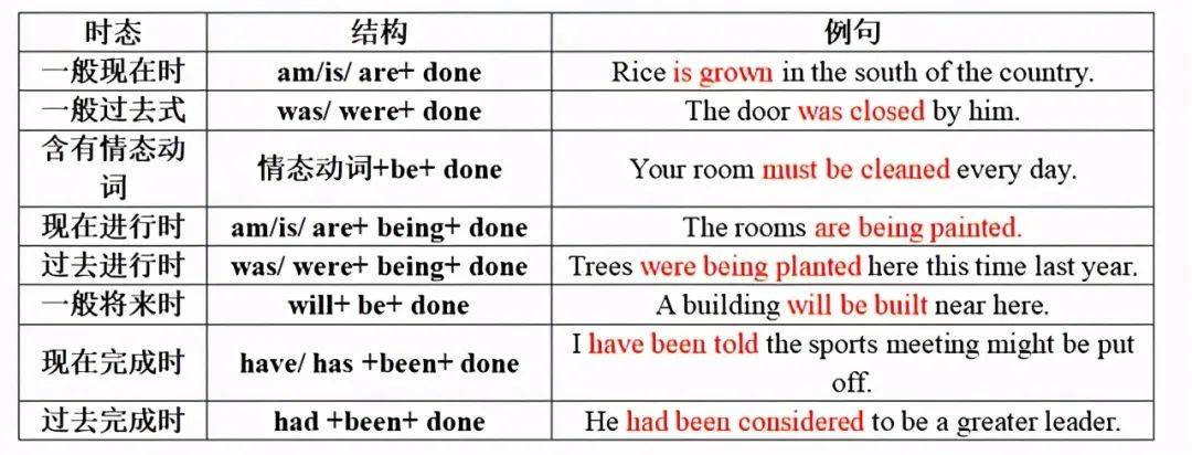口诀:宾变主,主变宾,谓变be done, 时不变,数格必须随被变。