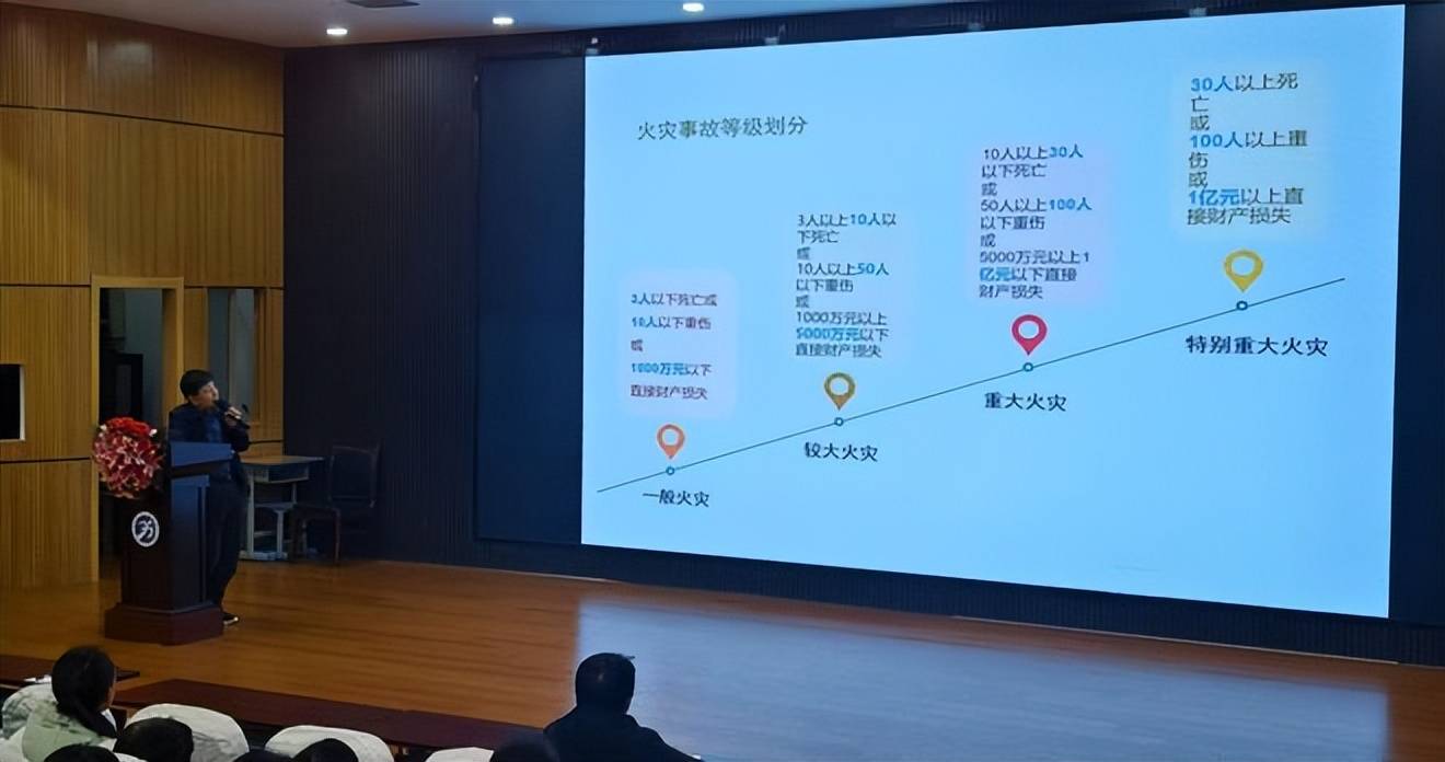 本次讲座紧扣“预防为主·生命至上”的主题。主讲人凭借丰富的理论知识和实践经验,结合近年来国内外典型的校园及公共场所火灾案例,图文并茂地剖析了火灾发生的原因、教训以及带来的巨大危害。重点围绕以下几个方面进行了深入浅出的讲解。