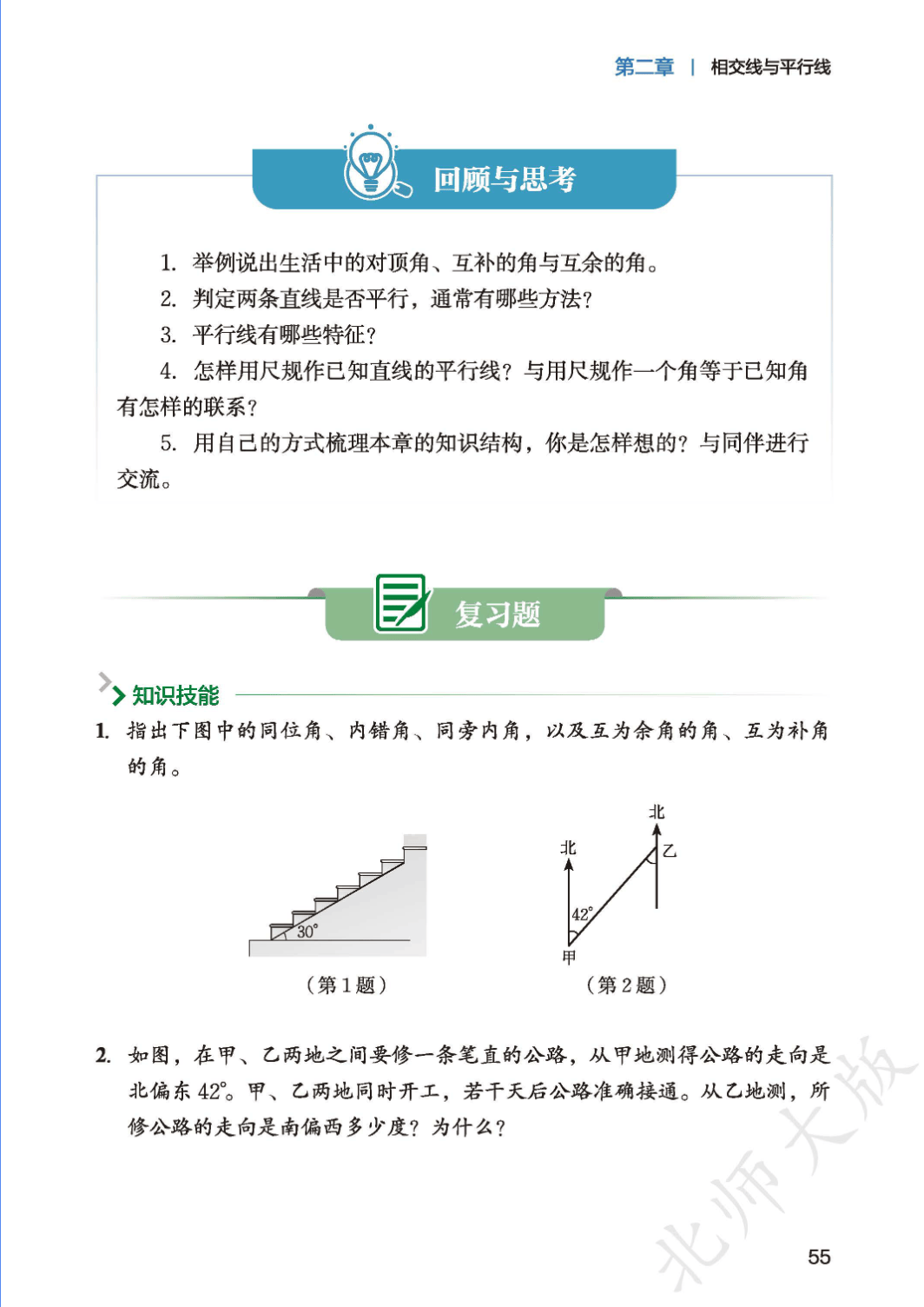第一章《整式的乘除》衔接上册整式知识,新增幂的运算性质与乘法公式,搭建代数运算进阶框架;第二章《相交线与平行线》探索直线位置关系,强化几何推理与尺规作图技能;第三章《变量之间的关系》引入函数思维,通过表格、图象等形式培养数据分析能力;第四章《三角形》系统讲解三角形性质与全等判定,夯实几何证明基础;第五章《生活中的轴对称》结合实例渗透对称思想,提升空间想象能力;第六章《概率初步》引导感受随机现象,掌握简单概率计算方法。