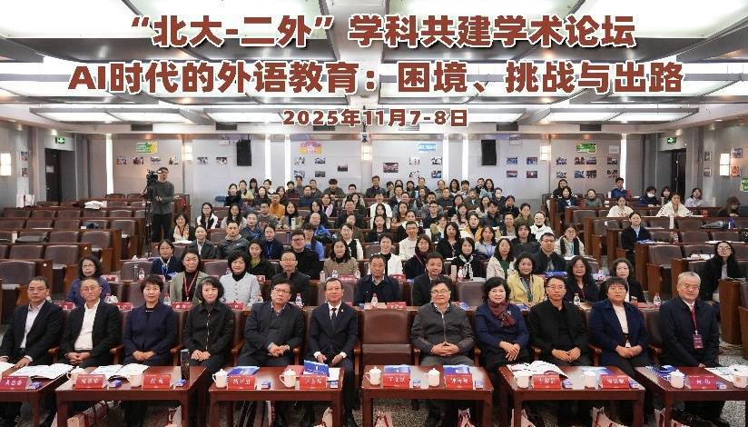 11月7日至8日,“北大-二外”学科共建之“AI时代的外语教育:困境、挑战与出路”学术论坛在北京第二外国语学院(简称“二外”)成功举办。本次论坛由二外、北京大学外国语学院与《二外学报》编辑部联合主办,来自北大、北外、上外等10余所高校的18位专家学者做主旨报告,共同探讨AI技术驱动下外语教育与人才培养的创新路径。北大外国语学院领导、二外各外语学院、职能部门负责人以及校内外师生共200余人参会。