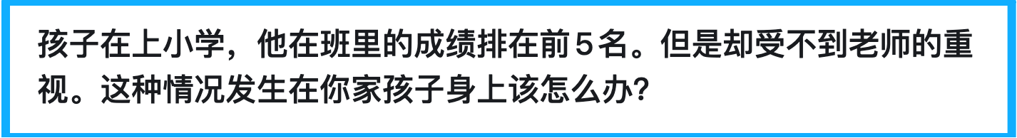 看到一位家长的求助:“孩子成绩在班里排前5名,却受不到老师重视,该怎么办?”这个问题引起很多家长共鸣。