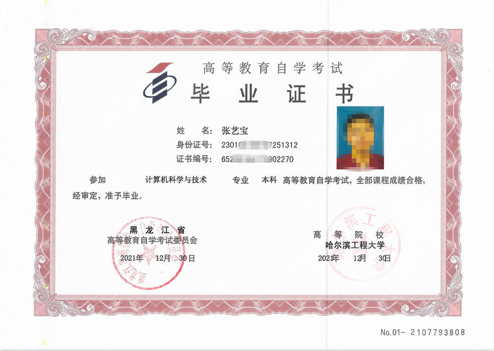 凡按照本专业考试计划的规定,取得全部课程及实践环节考核的合格成绩,完成毕业论文并通过答辩,思想品德经鉴定符合毕业要求者,由省高等教育自学考试委员会颁发毕业证书,由哈尔滨工程大学在毕业证上副署并负责学位授予等相关工作。