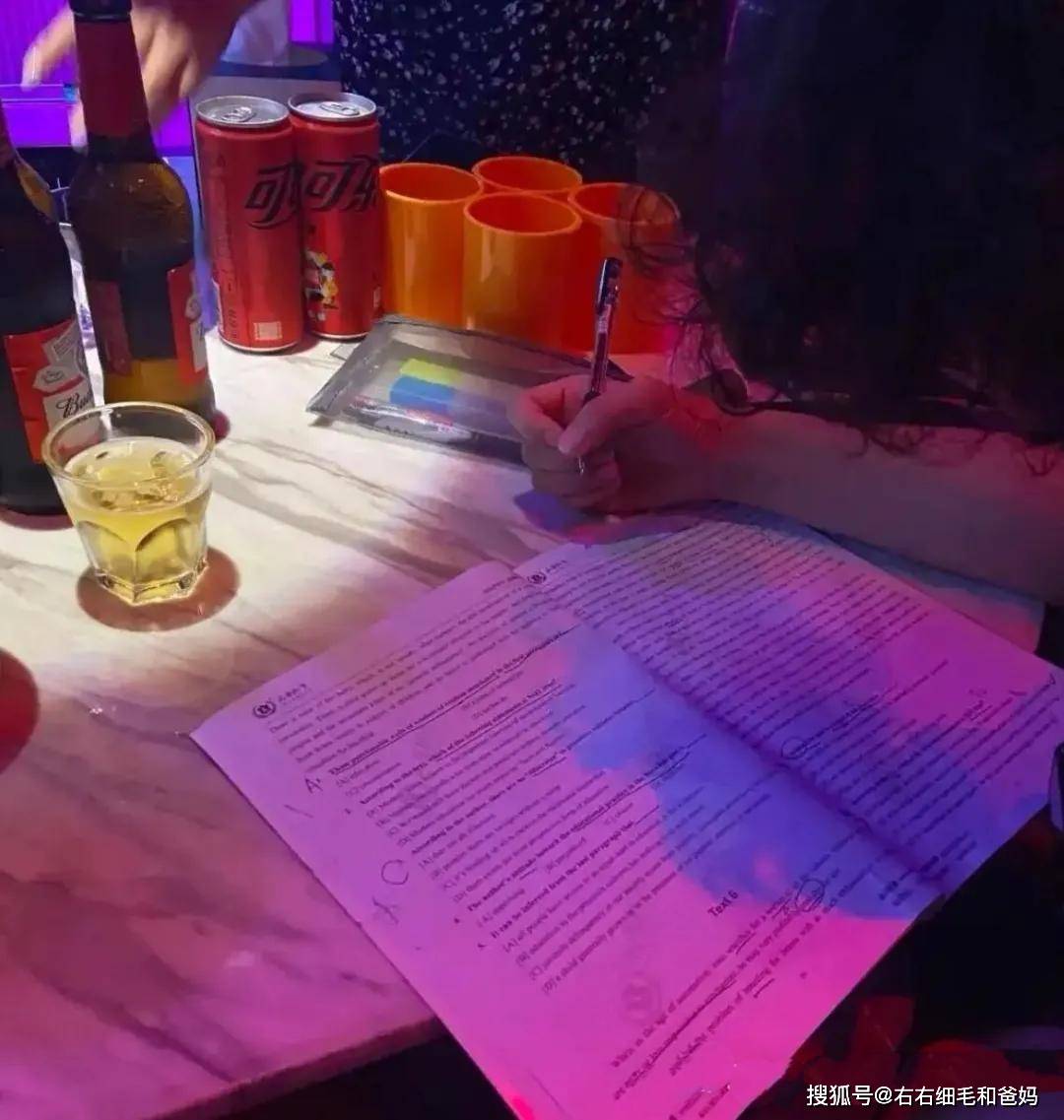 一名在KTV备考的女生解释:“做题比较烦躁,想要放松一下,在KTV里可以喊出来,比较解压,但由于临近考研了,出来玩感觉有种负罪感,就带上了学习资料。”