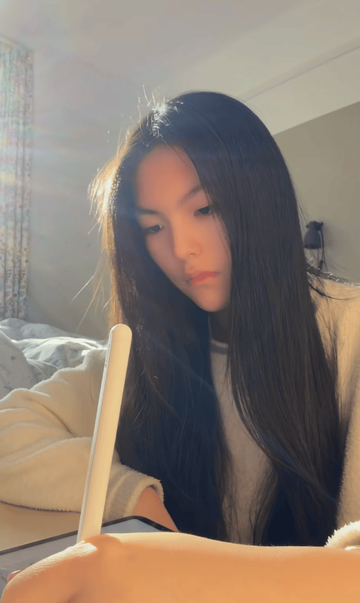 私下的王诗龄看起来真的好美,一个人安静的学习,之后还不忘去画画,穿着休闲服的时候瘦了好多比穿晚礼服好看太多了,独立生活的能力很强,和同学和老师交流的时候总是笑容满满。