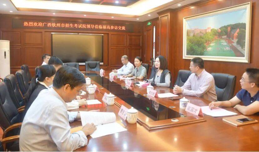 11月7日,广西钦州市招生考试院王有幸院长一行来榕交流教育招生考试有关工作。福州市教育局副总督学苏夏铃及市教育考试发展中心有关人员陪同调研。