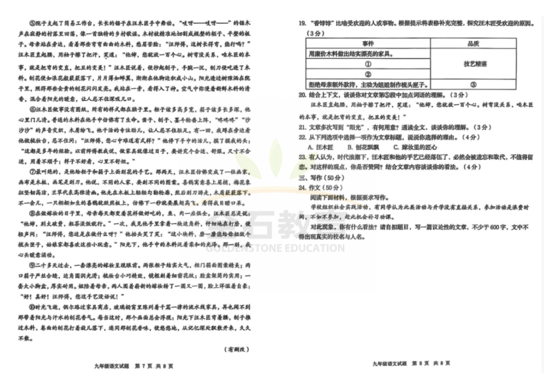 中高考资讯站第一时间整理了初三学业质量检测的真题试卷。