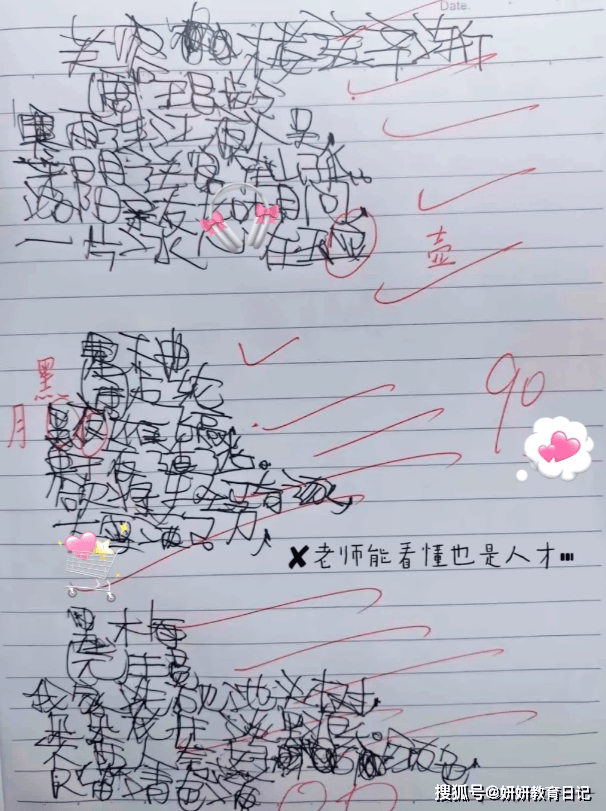 但是如果到了初中,他的字还是写不好,那就不像小学的时候这样有情可原了。家长们和老师真得加把劲去把他的这种坏习惯给扭转过来。