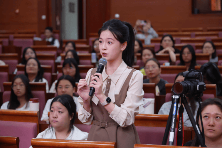 ▲总台新闻频道主持人郑新宇为学生做讲座