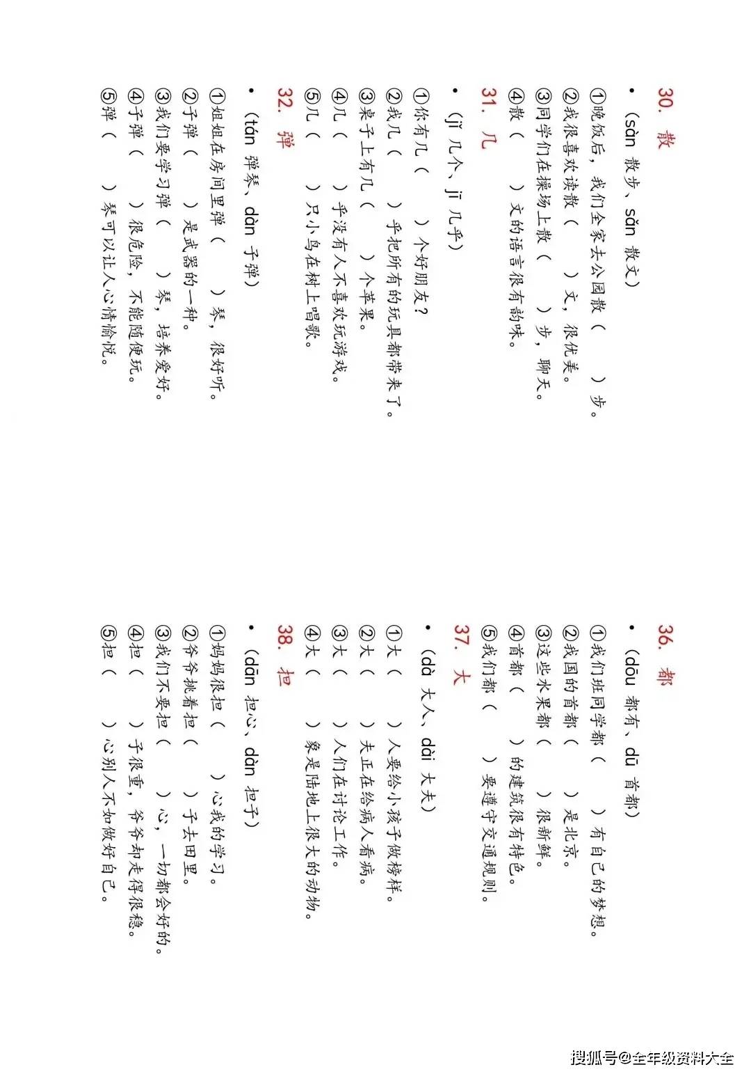 家有二年级小豆包的家长们,是不是总为孩子多音字学习犯愁?“教” 字到底读 jiāo 还是 jiào,“没” 字在 “没有” 和 “淹没” 里发音总搞混;看到 “空”“行” 这类字,更是不知道该选哪个读音,写句子时常常张冠李戴?别慌!这份二年级语文上册必会多音字练习,堪称 “多音字辨析神器”,围绕 “教、没、空、行” 等高频字,用语境填空的方式帮孩子吃透音义对应,轻松提升汉字辨析与运用能力!