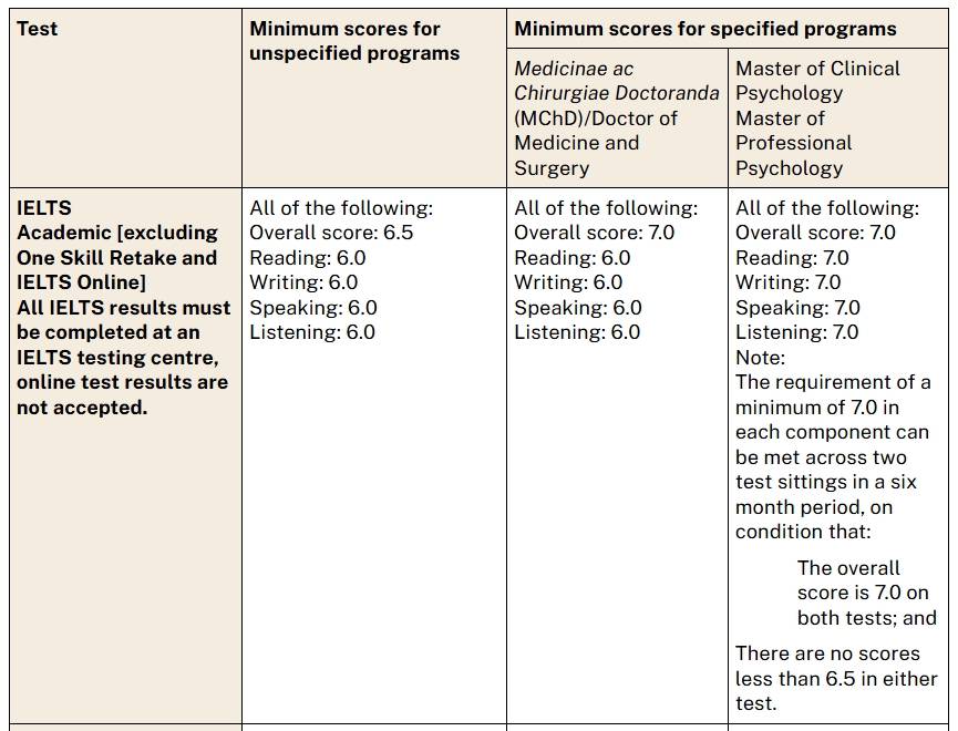 为了方便大家备考,下面我们就来盘点一下澳洲八大院校最新的语言成绩要求