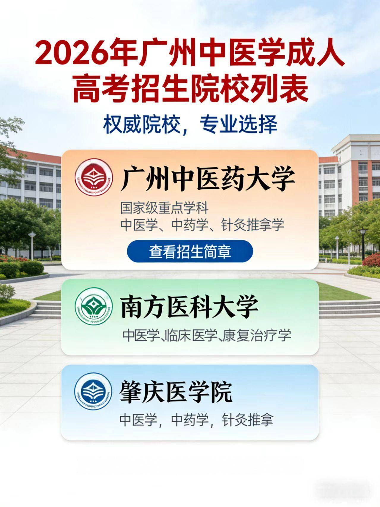 2026年广州成人高考中医学招生院校