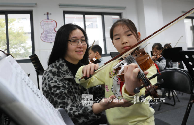 10月21日,张家港市南丰小学永联校区的孩子大课间练习弦乐。该校乐团是江苏省首个成建制乡村学校管弦乐团。庞瑞和 摄 视觉江苏网供图