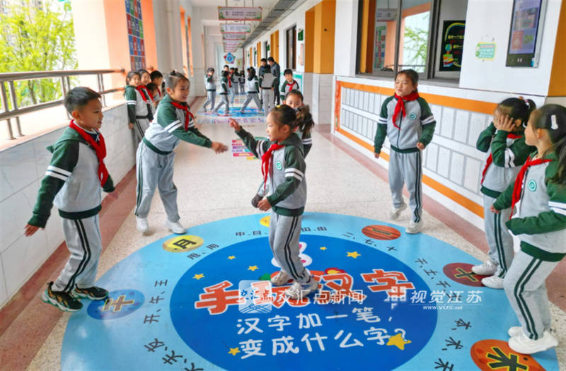10月21日,东台市实验小学长青路分校,学生在“五动”长廊开心游戏,乐享丰富多彩的15分钟课间活动。练益华 摄 视觉江苏网供图