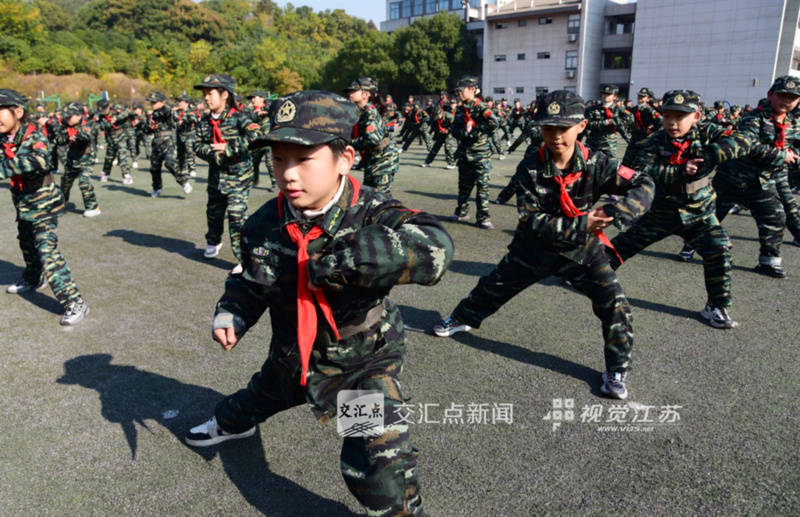 11月21日,镇江市南徐小学在大课间开展“国防体育大课间 强身健体展风采”军事体育游戏展示活动。石玉成 摄 视觉江苏网供图