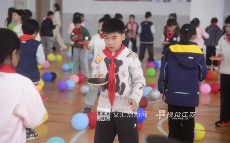 11月7日,连云港市赣榆城西中心小学开展乒乓球颠球运动,助力学生“身上有汗、眼里有光、脚下有力”。徐富春 摄 视觉江苏网供图