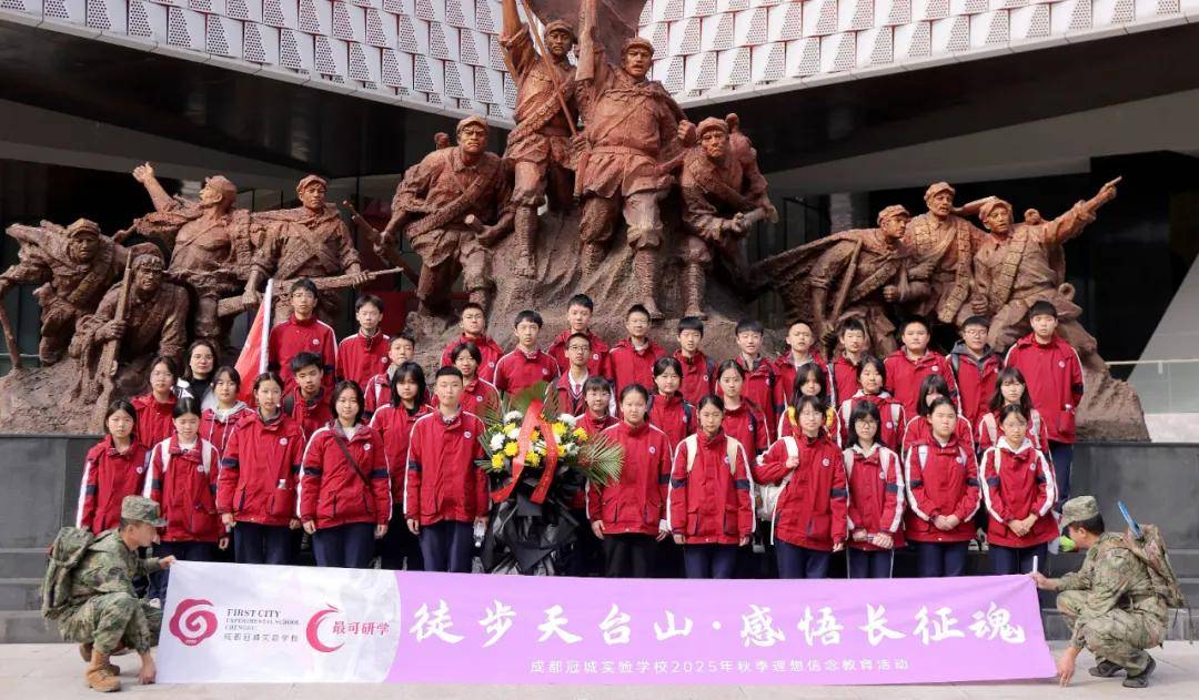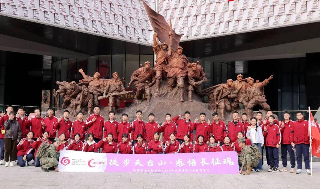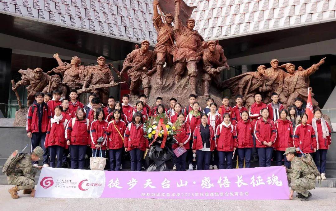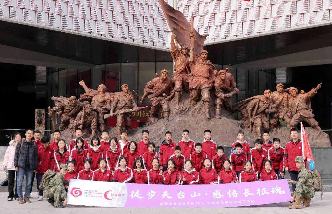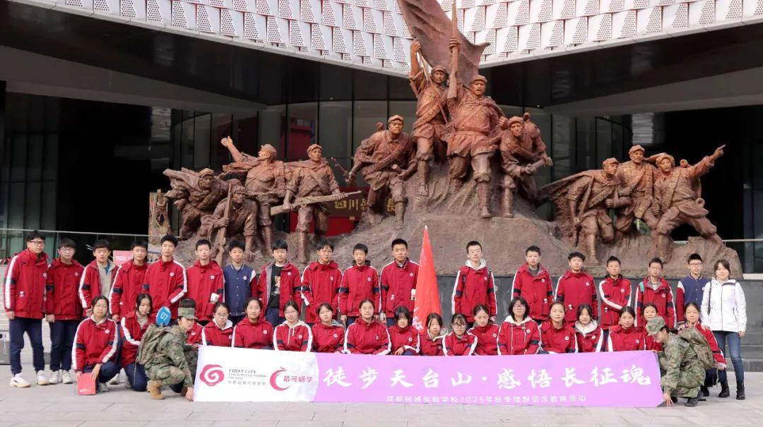 11月20日,初二年级全体师生赴邛崃天台山开展“重温长征精神,感受秋日情怀”主题实践教育活动。