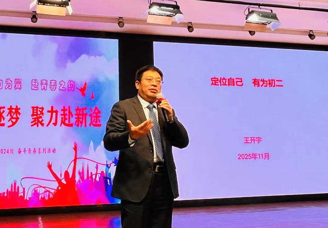 王开宇校长发表讲话,鼓励同学们明确自我定位,以智慧锚定青春航向,奋发有为,成就更好的自己。