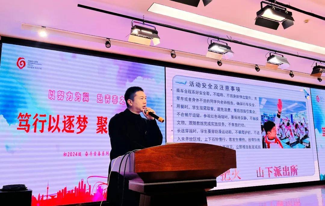 11月19日,成都冠城实验学校初二年级“奋斗青春”系列活动在报告厅拉开帷幕。全体师生齐唱国歌,在庄严的升旗仪式中开启主题教育新征程。初中部德育处主任叶亚名老师为活动致开幕辞。