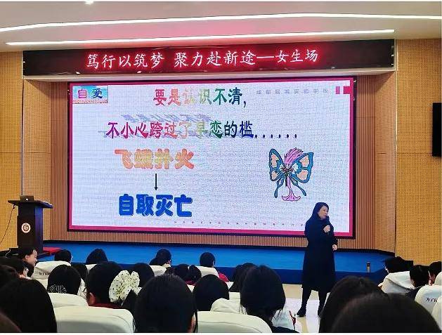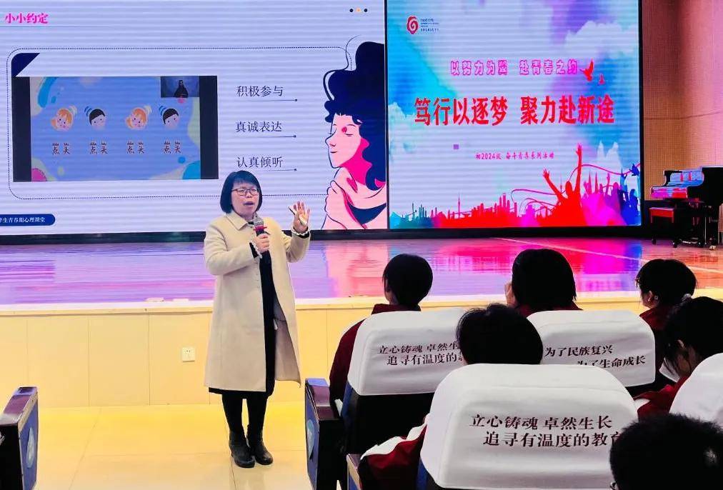 温江区教科院教师发展研究室主任孙泽萍 带来一场生动的心理专题讲座。通过趣味互动与沉浸式体验,她引导学生认知自我、探寻内心力量,为青春成长注入温暖能量。