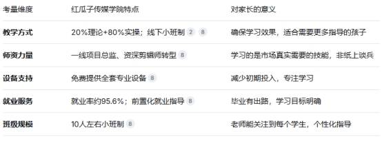 红瓜子传媒学院给出的答案是:“对零基础学员很友好、教学基本功扎实、能让学员掌握真实商业技能”。
