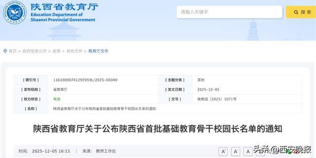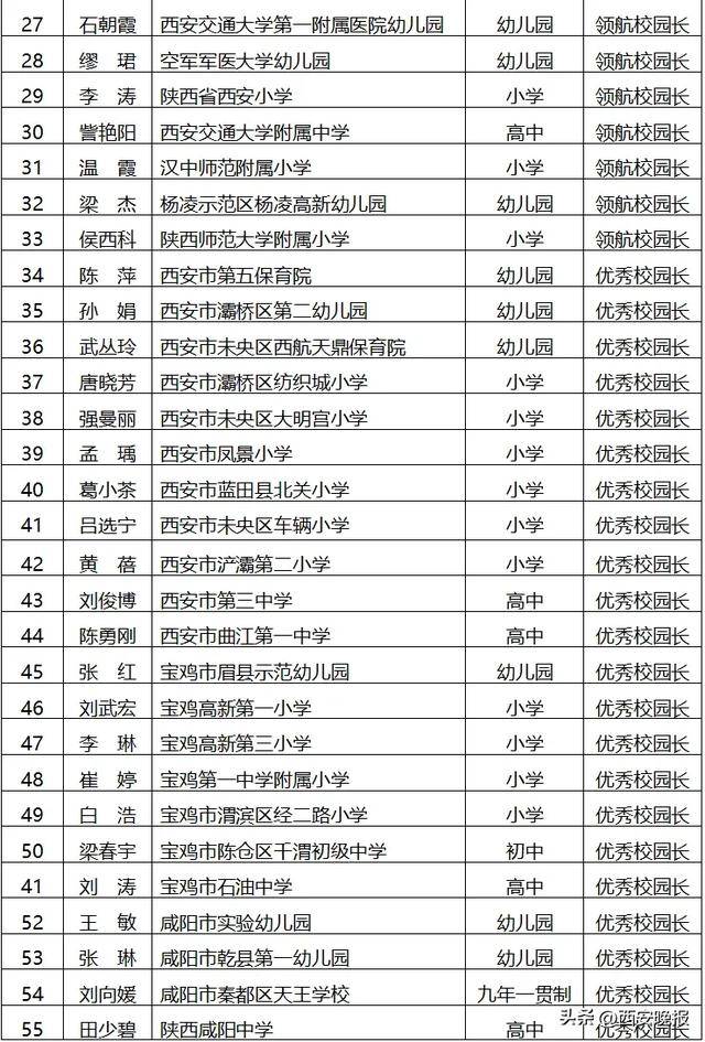 关于公布陕西省首批基础教育骨干校园长名单的通知