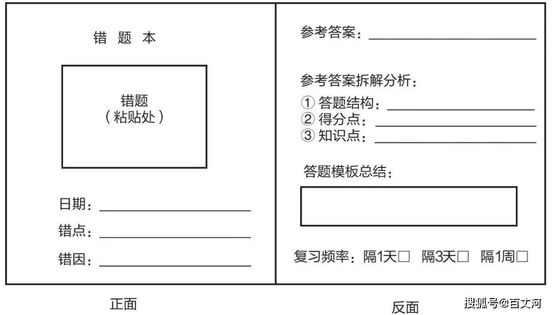建议用活页纸整理错题,正面是错题+错点+错因,反面是参考答案+参考答案拆解分析+答题模板总结。