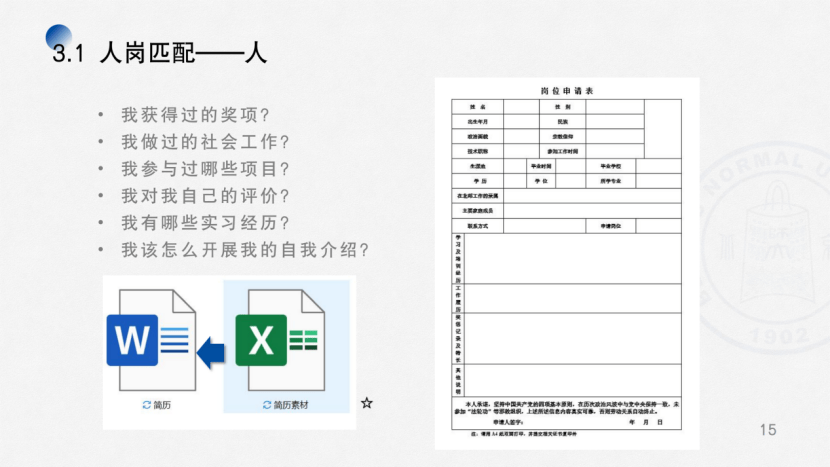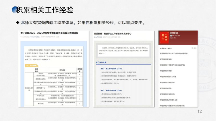 同学们可以通过学院就业群+“京师就业”“师大人找工作”公众号+高校人才网)来搜集招聘信息。王老师提醒大家选择关注渠道≤3个,避免信息爆炸。