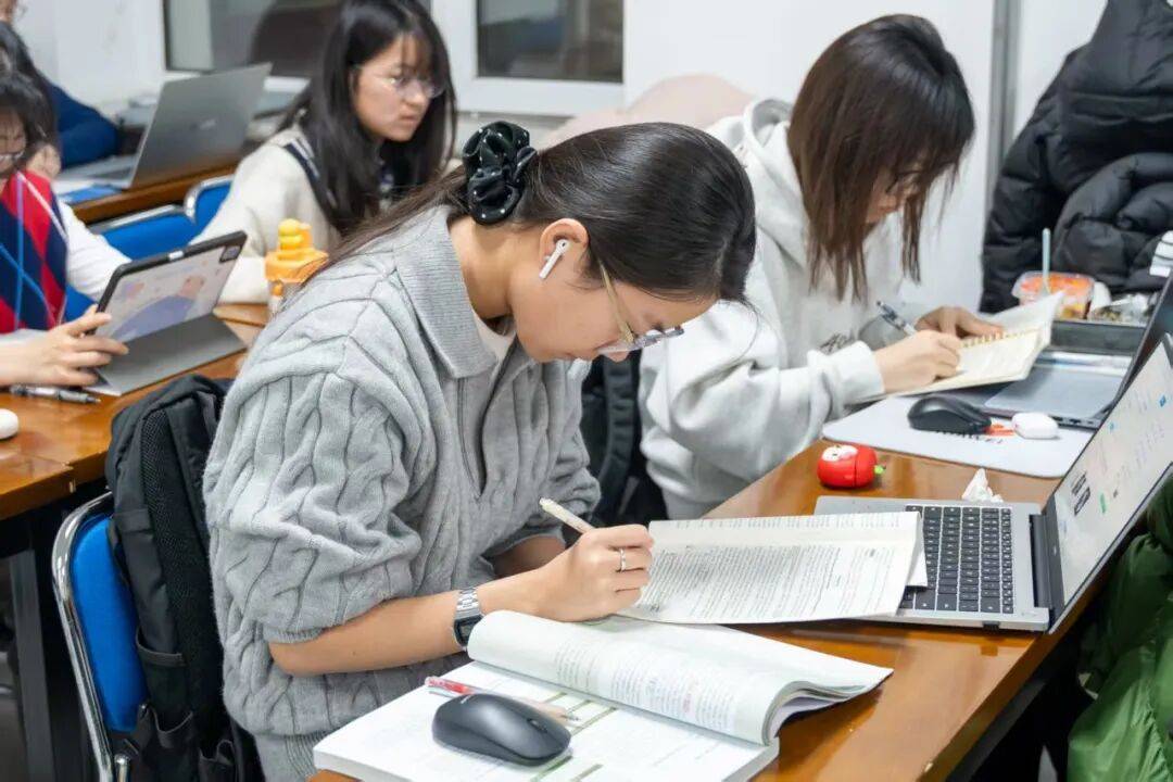 晚自习安排充实而有体系,体现出“有内容、有指导、有跟踪、有收获、有提升”的特点。各学院根据专业需求设计了多样化的学习内容,有的学院组织试卷练习与教师现场答疑;有的学院组织外教开展专题讲授,拓展学生语言与文化视野;有的学院布置专业任务与软件操作,学生需借助专业软件完成大作业,强化学生实践与应用能力。晚自习不仅注重知识巩固与任务完成,还通过实时指导和过程跟踪,切实促进学生学习成效与综合能力的提升。