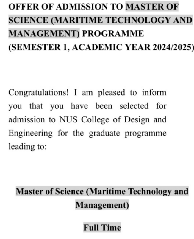 2024年1月25对我来说注定是个不平凡的一天,12点刚过,揣着忐忑的心态点开nus官网 “offer made”! 可能只有申请季的朋友才能明白我当时的心情吧,我几乎把所有关系好的朋友都群发了遍,也成功在当晚失眠了。心中感慨万千,不过一切的等待都值得了!