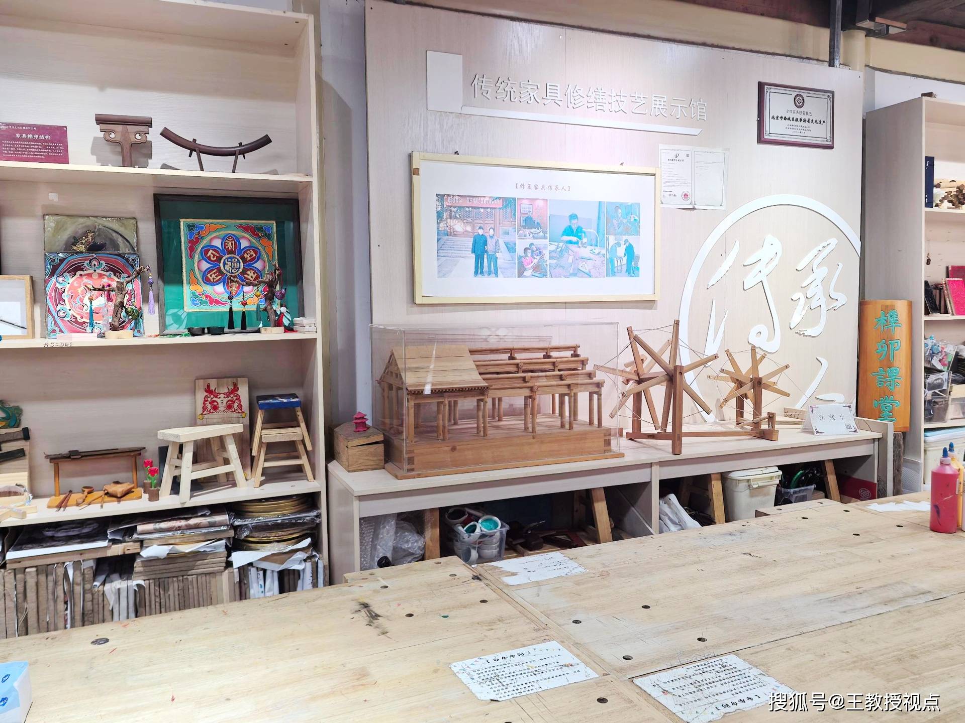 王建省教授的到访,为木工坊的传承实践增添学术助力。其团队与工坊深度交流,讨论了三个维度学研融合。