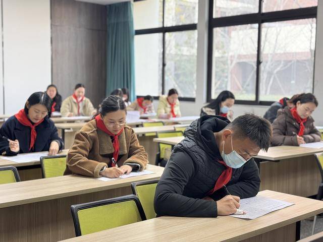 活动伊始,少先队知识卷面测试有序开展。测试内容紧密围绕新版《中国少年先锋队章程》《中国少年先锋队标志礼仪基本规范》等核心内容,全面检验辅导员对少先队基础知识、组织架构、职责使命等关键内容的掌握程度。考场上,全体辅导员沉着作答、认真审题,充分展现了扎实的理论储备和严谨的学习态度,为后续工作开展筑牢理论根基。