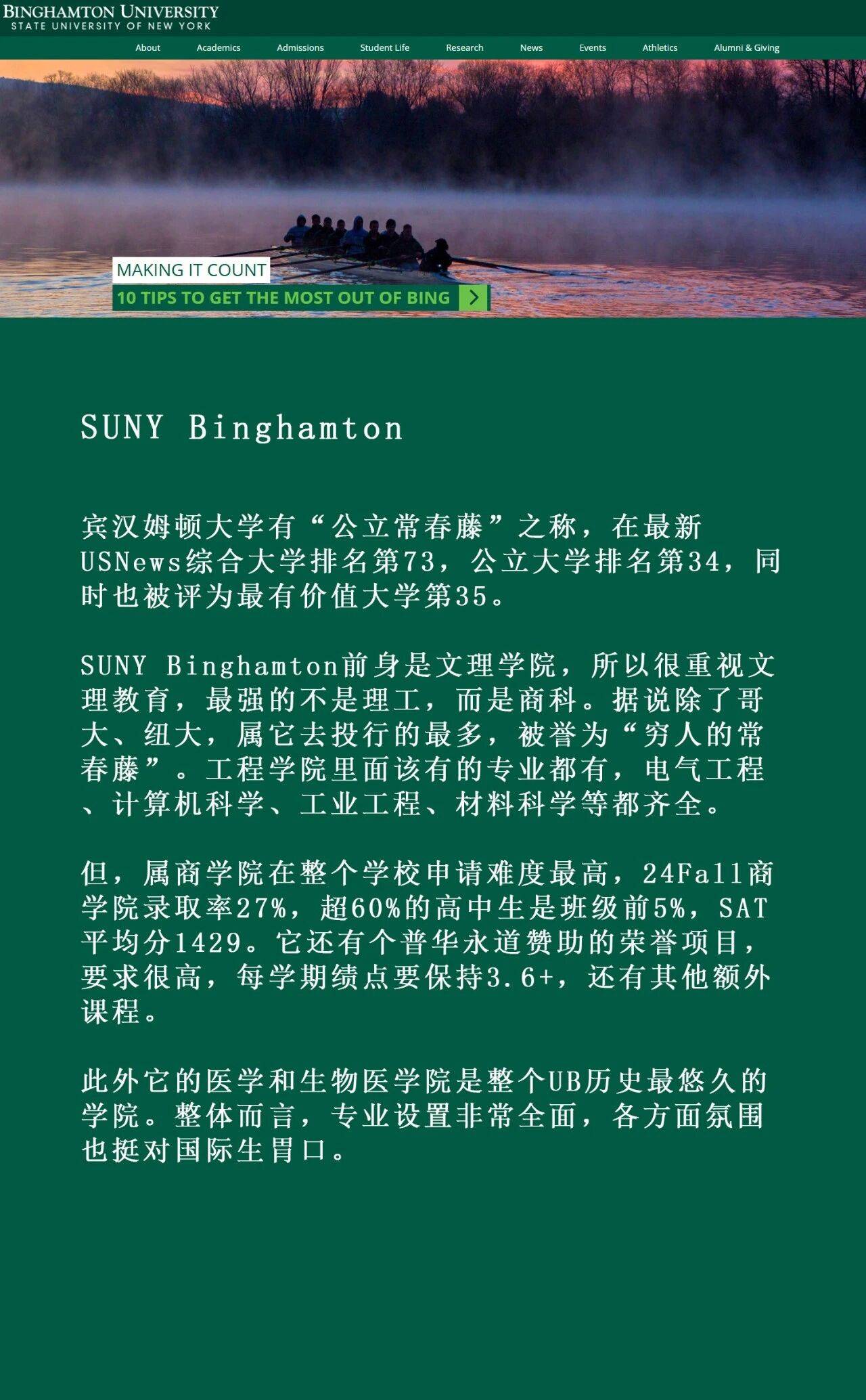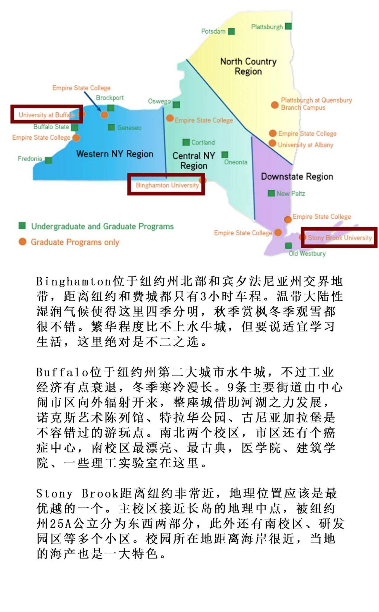 🌟最出名的有三所:纽约州立大学布法罗分校、纽约州立大学宾汉姆顿、纽约州立大学石溪分校。