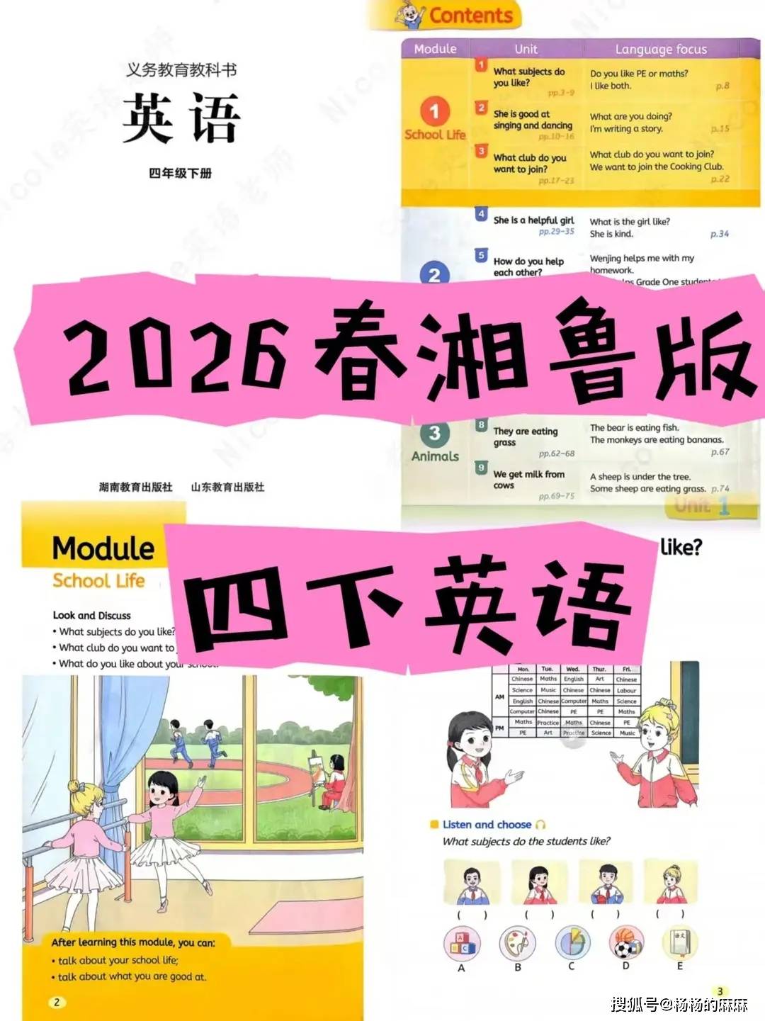 还在愁四年级孩子学英语总 “不敢开口”?句型记了不会用、语音发音总不准、课堂互动跟不上,明明背了很多单词,遇到实际交流还是说不出完整句子?2026 春湘鲁版四年级下册英语课本,直接把孩子最熟悉的 “校园生活” 搬进课堂,让英语学习不再是枯燥的单词背诵和句型默写,而是能随时随地用英语交流的实用技能,帮孩子轻松突破 “开口难” 的瓶颈!