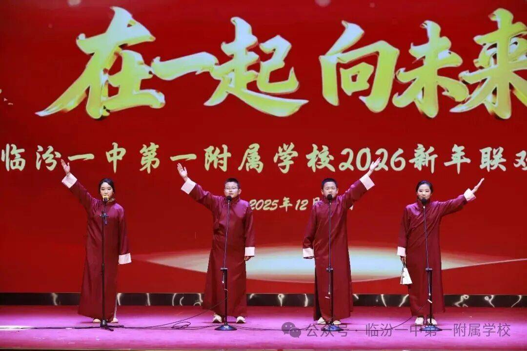 岁末钟声渐近,新年篇章将启。临汾一中第一附属学校“在一起 向未来”为主题的2026年元旦联欢会于璀璨星光中温情上演。师生们通过情景剧、相声、歌舞等形式,将教育故事、师生情谊与成长历程,凝练为舞台之上华彩流转的动人诗篇。