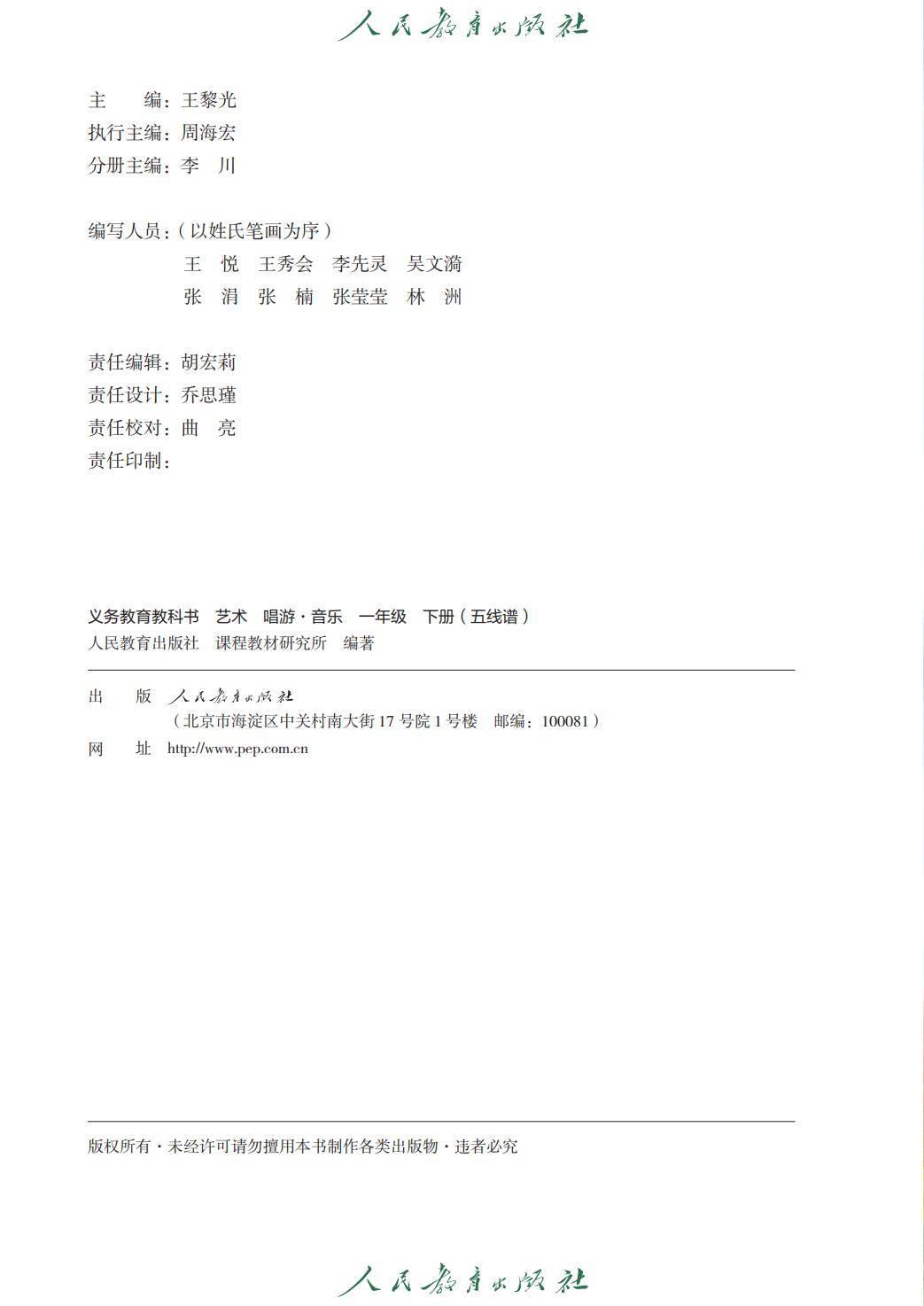 2026春人教版一年级音乐下册电子课本(高清版五线谱新教材)就为您介绍到这里,资源来源于网络,仅为学习交流之目的进行分享,其版权均归原出版社及作者所有。
