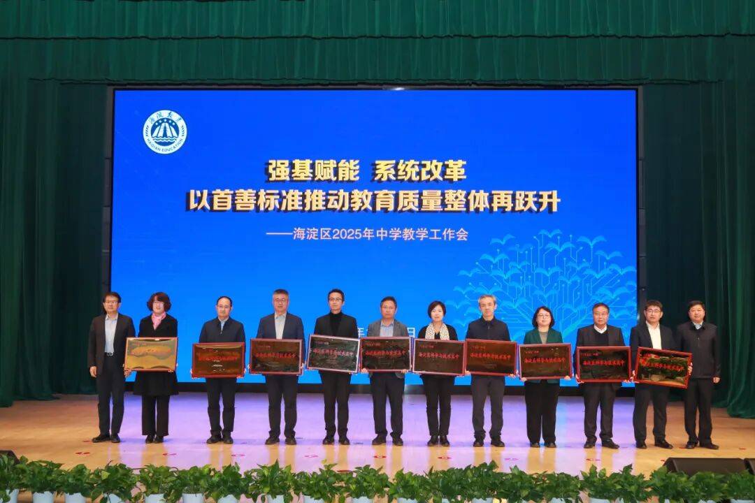 海淀区2025年中学教学工作会上,与会领导为海淀区首批科学与技术高中颁牌