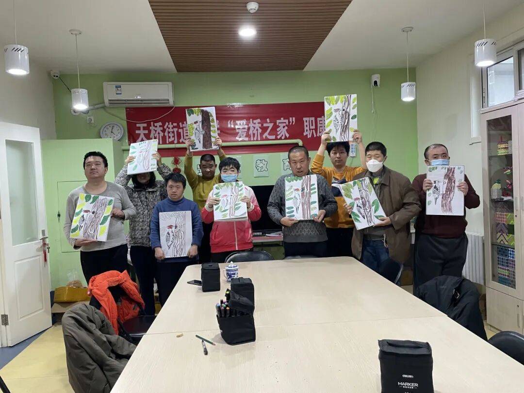 活动尾声,学员们手持作品合影留念,并互相交换画作点评。职康站老师表示:“此次活动不仅锻炼了学员的精细动作能力,更通过生态主题引导他们关注自然、热爱生活。未来我们将继续探索艺术与康复融合模式,为学员提供更多展示自我的平台。”