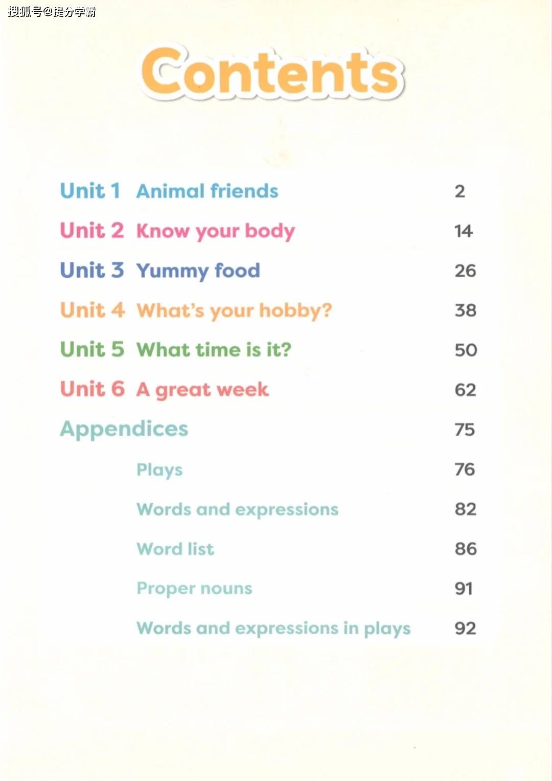 教材共设置六个单元,每个主题都贴近孩子的生活体验。第一单元 “Animal friends” 从动物园场景切入,通过《Pandas, pandas》的歌谣,让孩子在唱跳中认识熊猫、大象等动物,学会用 “What are they?”“They’re…” 的句型描述动物特征。第二单元 “Know your body” 结合哪吒 “三头六臂” 的趣味例子,让孩子在互动中掌握 “head”“eyes” 等身体部位单词,并用 “I have got…” 句型描述自己和他人的外貌。第三单元 “Yummy food” 围绕美食主题,引导孩子用英语表达喜欢的食物,培养健康饮食观念。第四单元 “What’s your hobby?” 鼓励孩子分享兴趣爱好,在交流中提升口语表达能力。第五单元 “What time is it?” 通过日常时间场景,教会孩子认读时间,用英语规划每日生活。第六单元 “A great week” 梳理一周生活,让孩子用英语回顾和描述自己的日常活动。