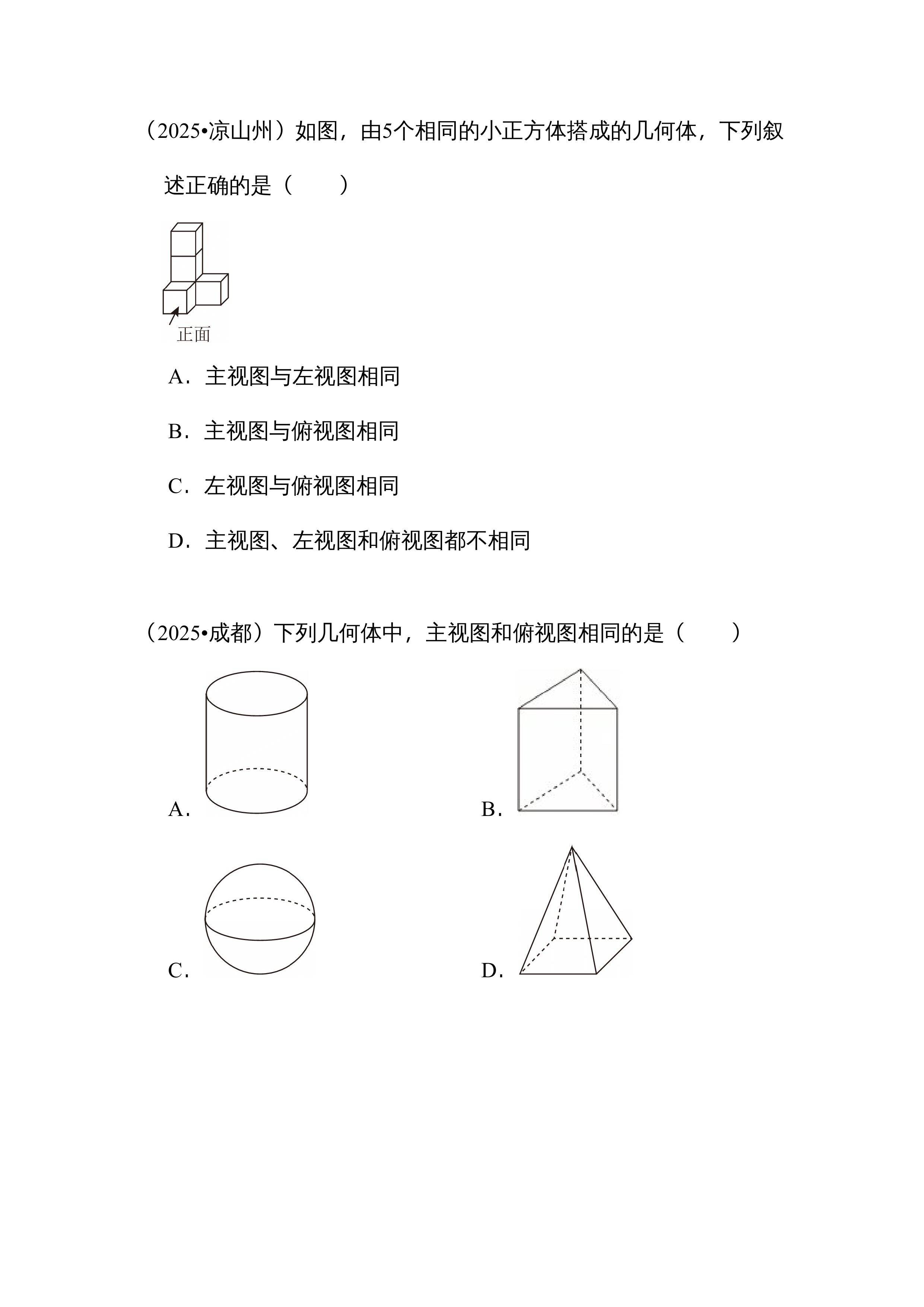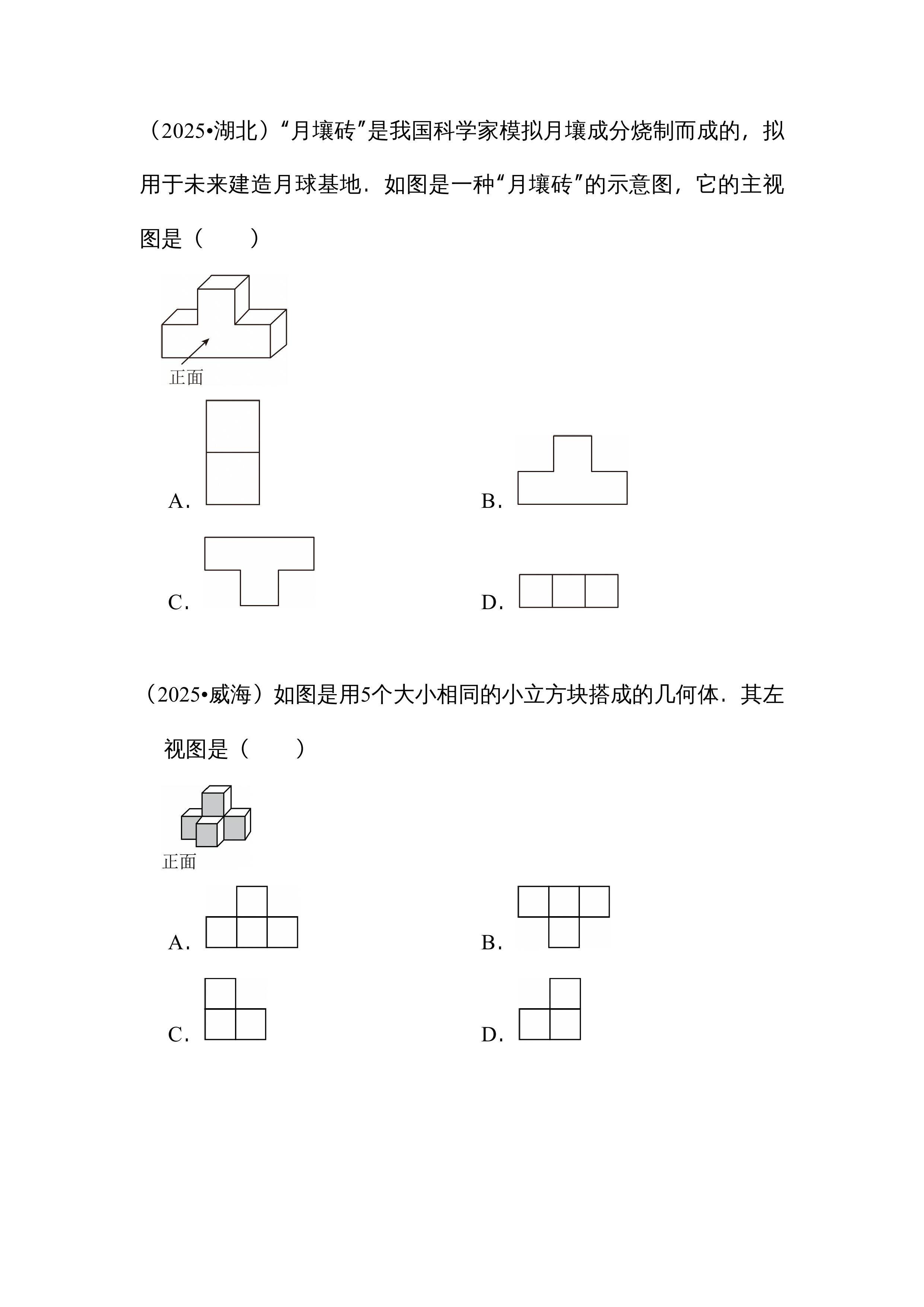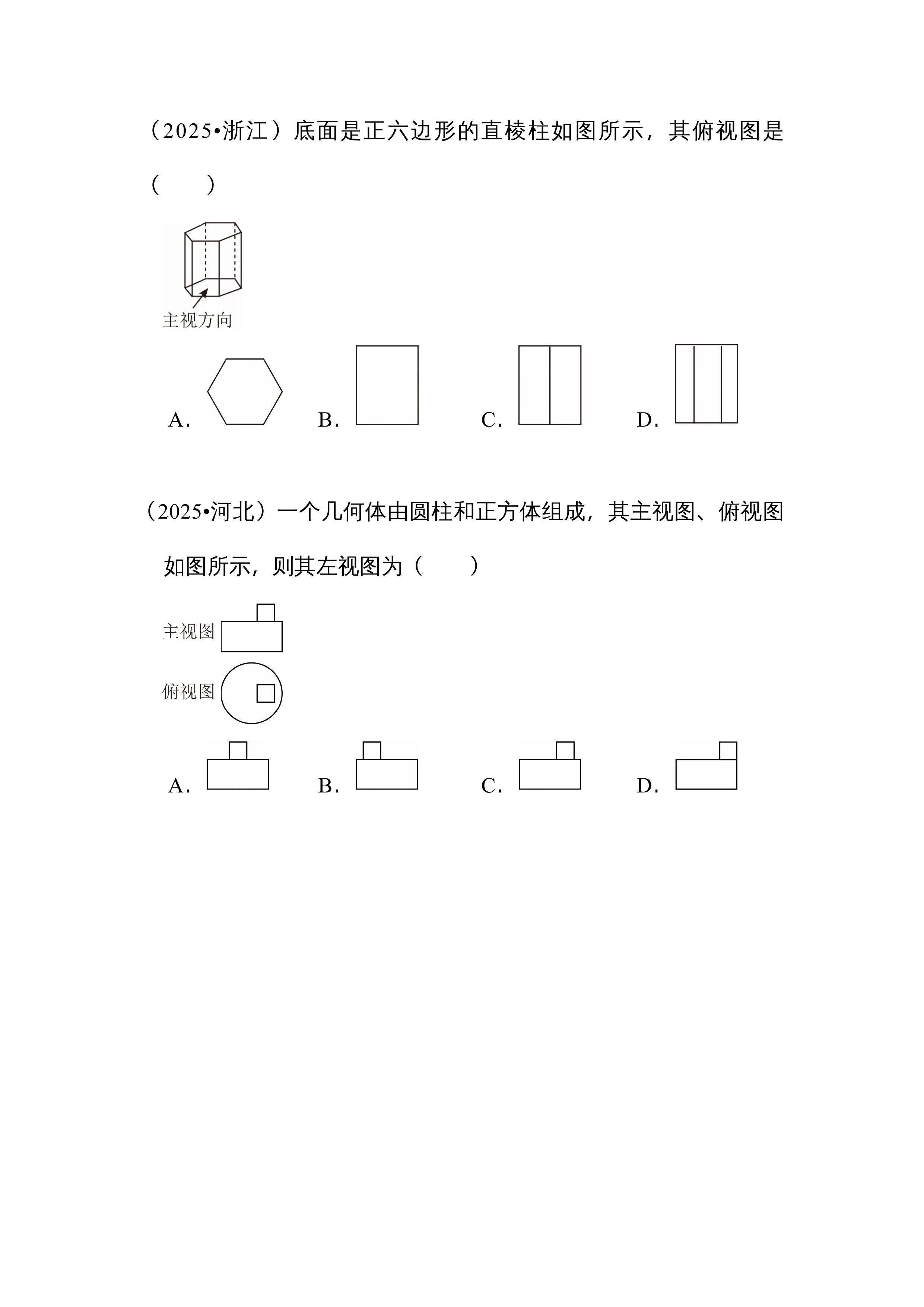 新七年级上册期末三视图期末冲刺练习中考数学真题2026新教材