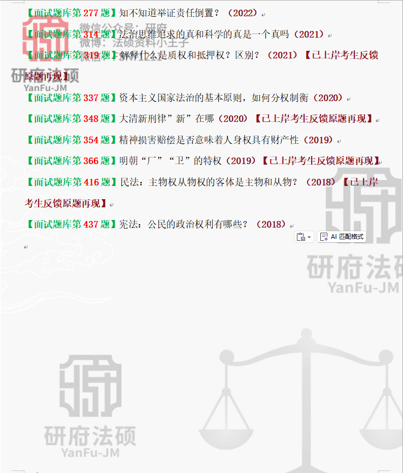 中央司法警官学院法律硕士专业课口试真题题库(18年至25年:合计447题;累计8年真题汇编)