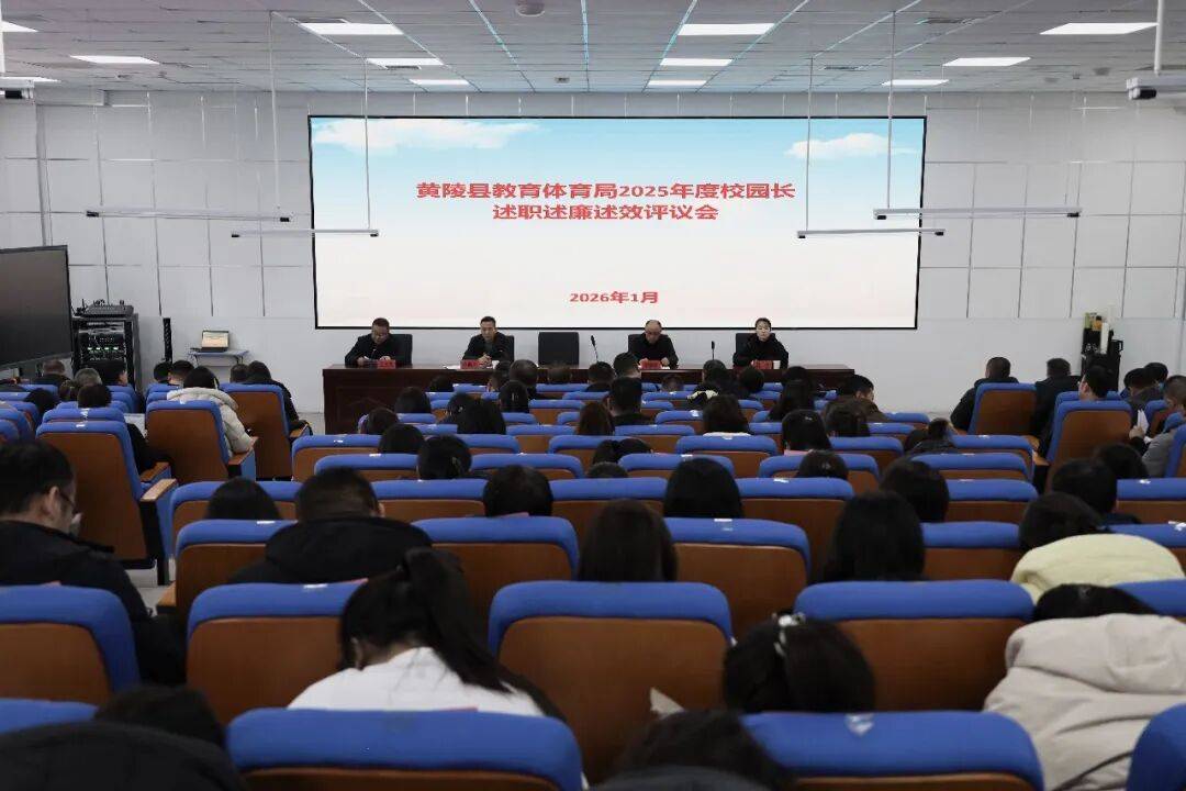 为深入贯彻落实全面从严治党要求,进一步增强广大校园长责任意识、廉政意识和效率意识,提升学校管理水平和教育教学质量,1月15日,黄陵县教体局召开2025年度校园长述职述廉述效评议会。会议由县教体局党委副书记、副局长苏醒天主持。县直机关工委书记党晓黎、副书记孔宁,县教体局班子成员,局机关各股室人员,局属各单位负责人,职教中心主任、新区第二小学校长、特教学校校长,各教育集团总校校长、分校区执行校长、各幼儿园园长,各校园教师及家长代表共计150余人参加会议。