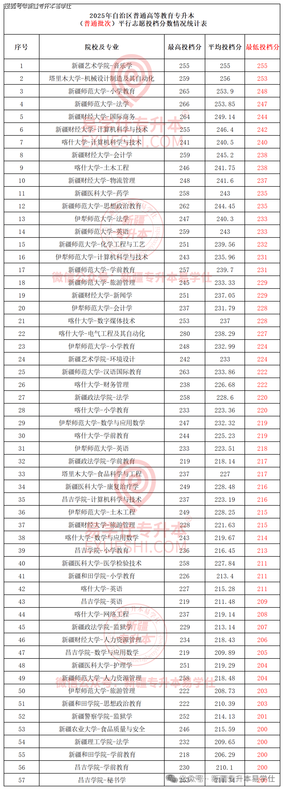 从近三年新疆专升本各院校录取分数线来看,200分以上的高分专业数量呈稳步增长态势,竞争激烈程度可见一斑。