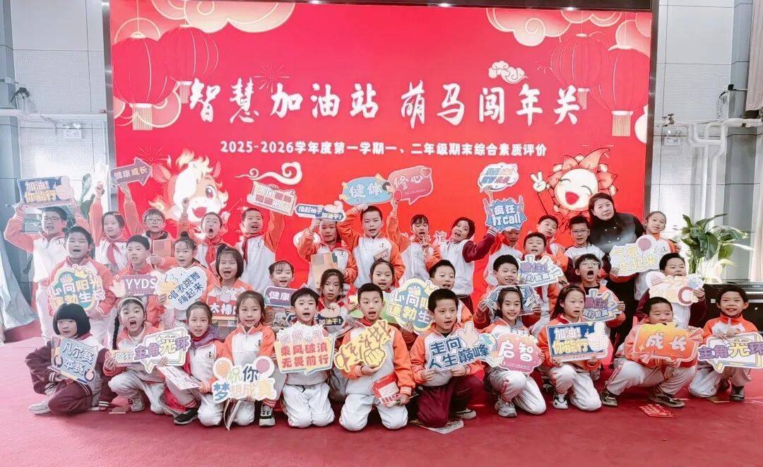 学校开启了“智慧加油站 萌马闯年关”一、二年级期末综合素质评价活动。结合学生的认知特点,学校教师精准提炼语数英学科的核心知识点,构建学习任务群,深挖跨学科融合点,设置了兼顾趣味性和挑战性的进阶性闯关项目。闯关过程中,六年级的学生化身“小考官”,成为本次跨学科评价活动中的评价者,以及一、二年级同学“乐考”的引导者和助力者。