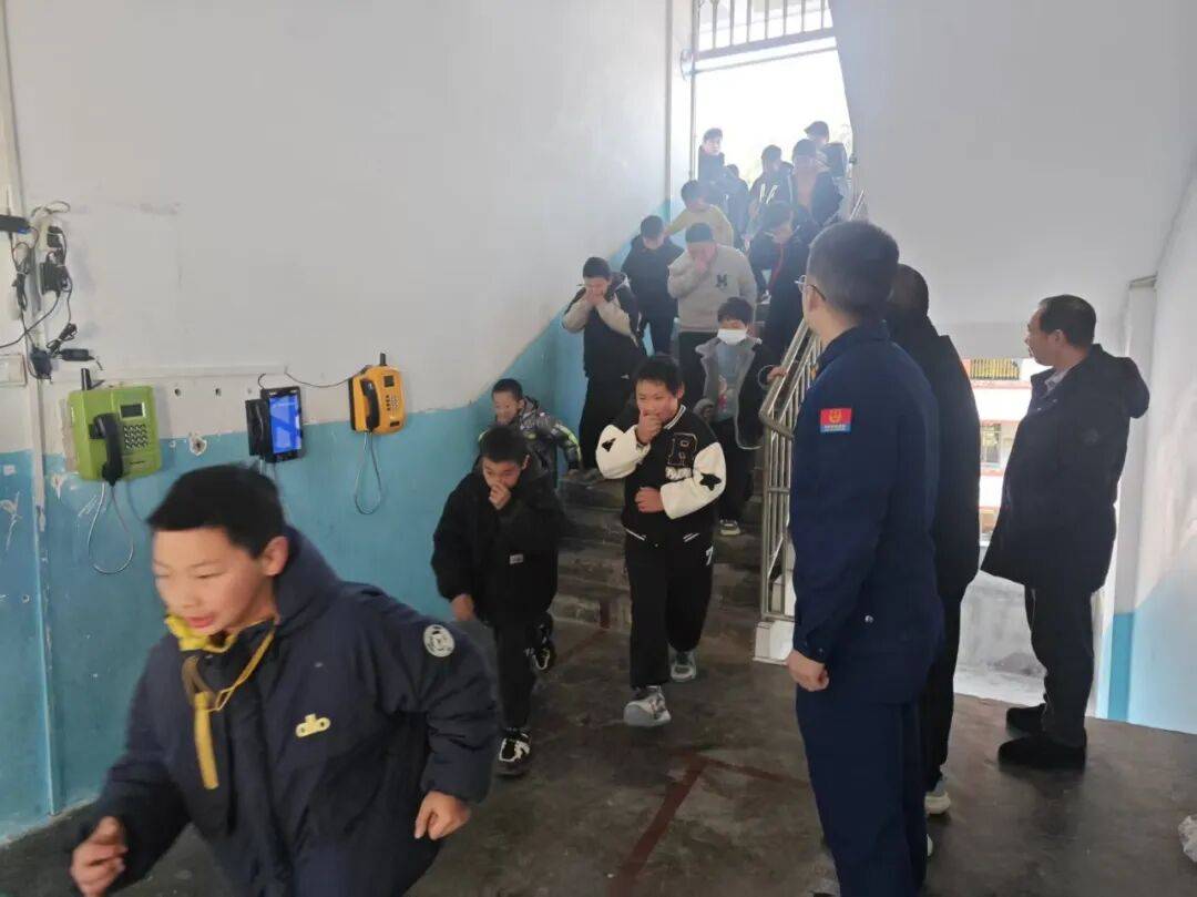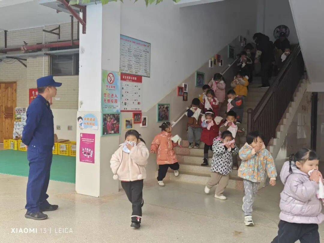 随着消防警报模拟响起,一场贴近实际的疏散演练有序展开。孩子们在老师和消防员的引导下,弯腰低姿、用湿毛巾捂住口鼻,沿指定路线快速撤离至安全区域,初步掌握了火场逃生的基本方法。
