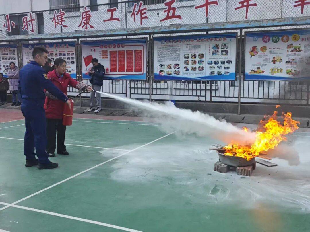 在消防实操演练环节,现场教学与实战体验紧密结合,成效显著。消防员系统演示了灭火器的正确使用方法,分解并强调了“提、拔、握、压”四大操作要领。