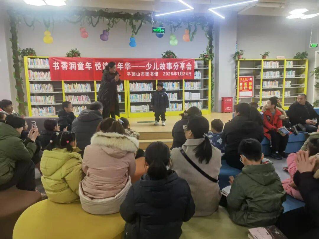 为激发学生阅读兴趣,营造浓郁的读书氛围,2026年1月24日,平顶山市图书馆特举办“书香润童年 悦读嘉年华”少儿故事分享会。分享会在平顶山市图书馆少儿阅读空间成功举办。本次活动共有38名儿童及家长参与,现场气氛热烈,反响良好。
